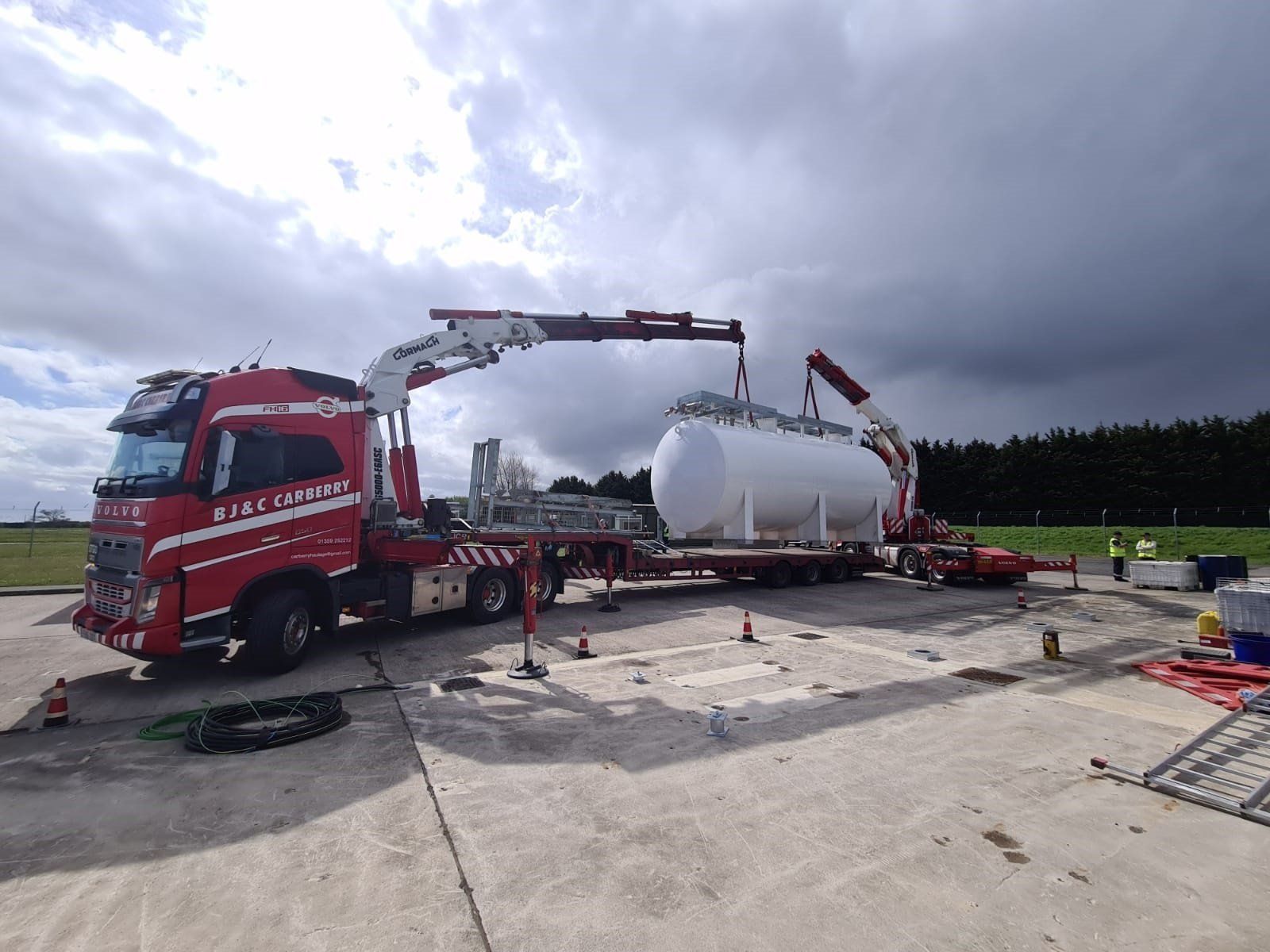 Tandem hiab lift at St Athan Airport Airside